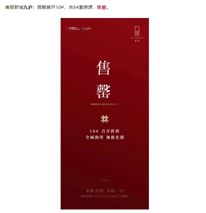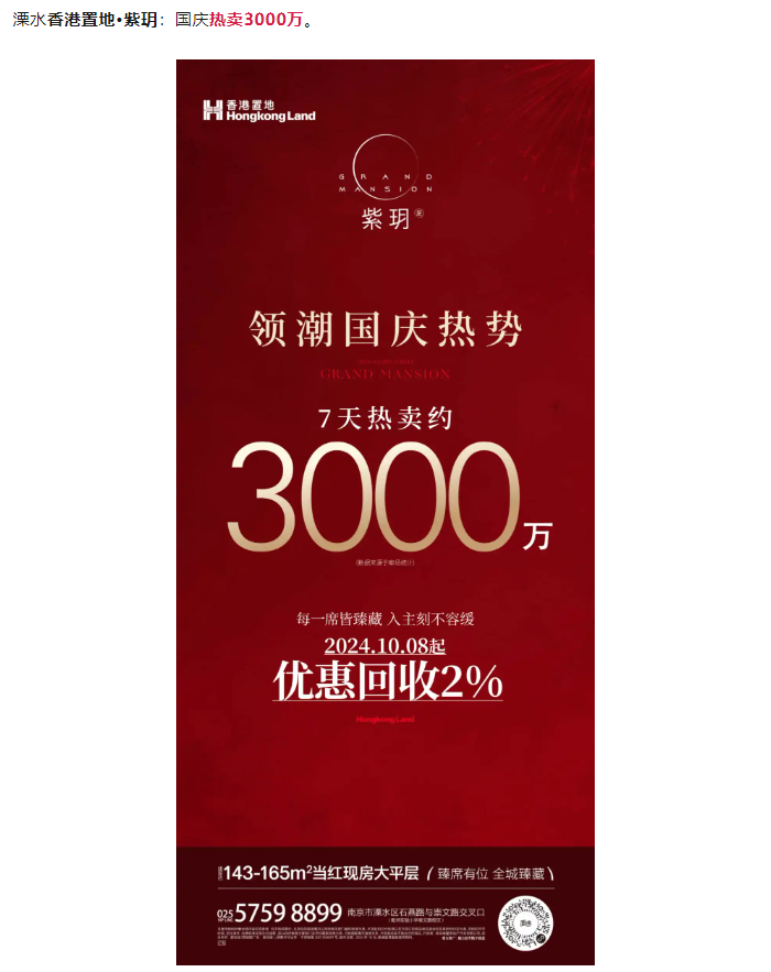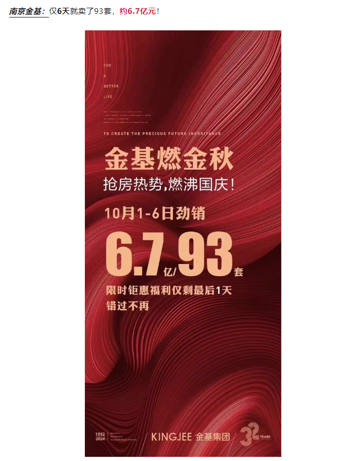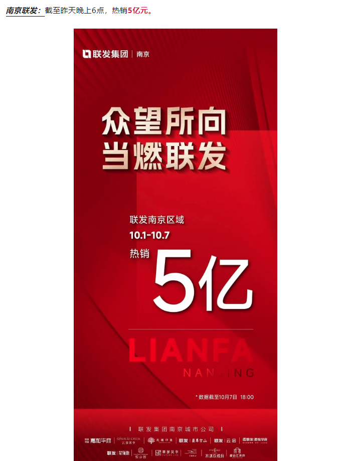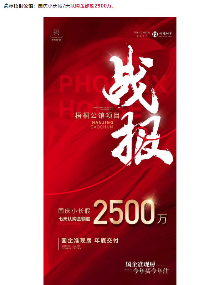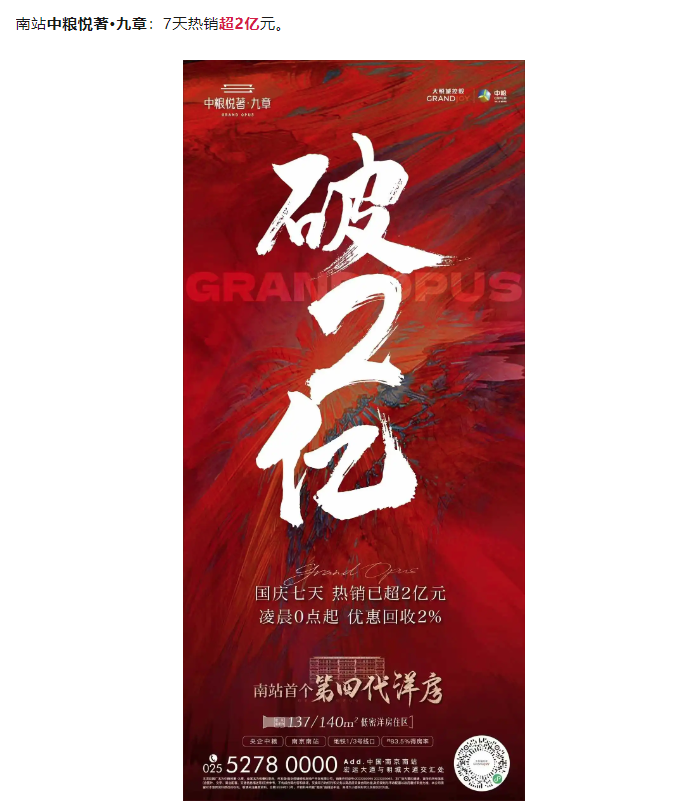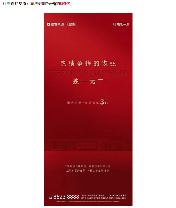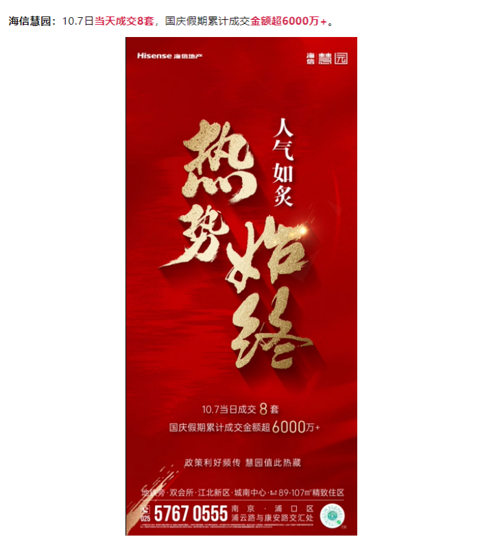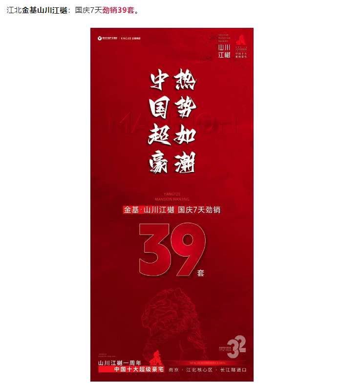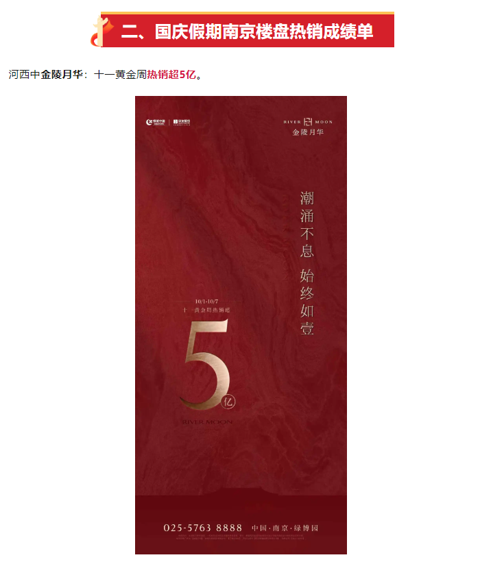 南京部分房企(楼盘)国庆热销成绩单出炉